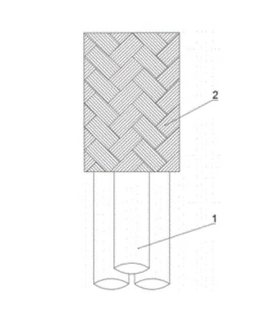 [0028]S2.將多根紗線合并加捻編織為護(hù)套2的捻線;